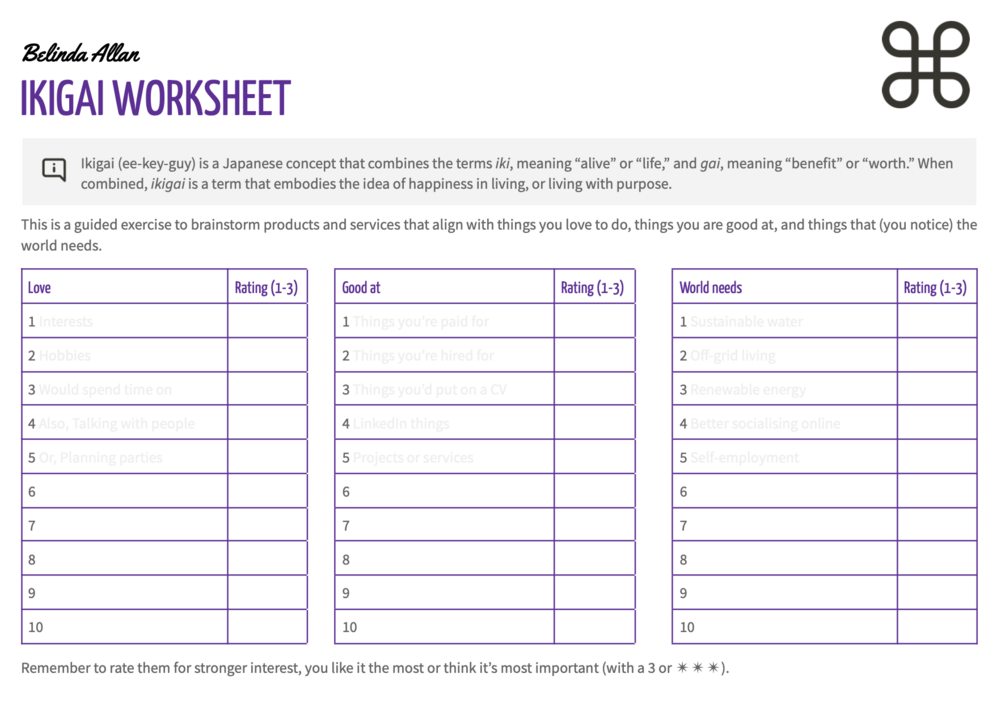 If you want the full breakdown of the practice of finding your ikigai and why it's such an enlightening process then read the full blog post on BelindaAllan.com