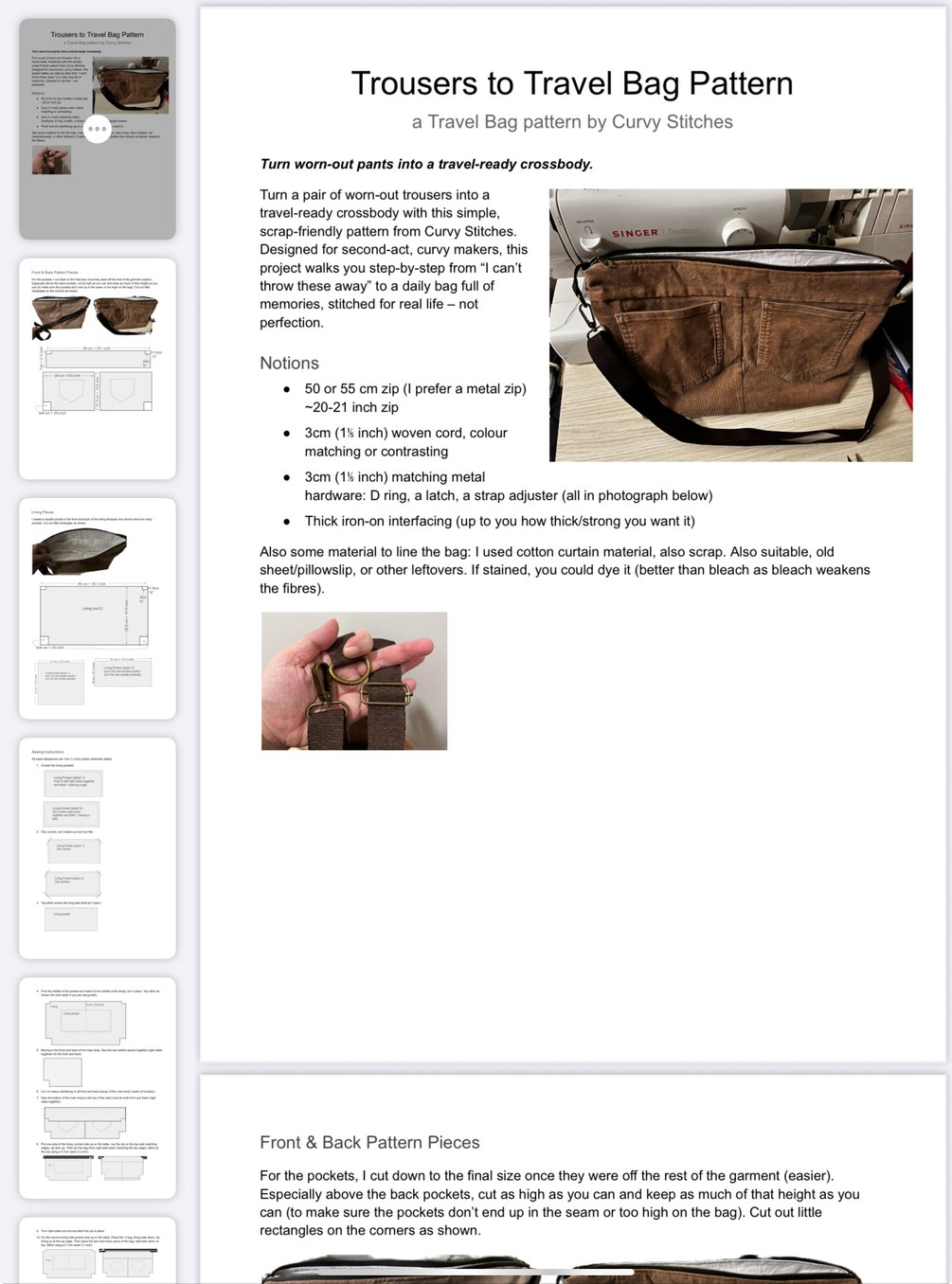 Trousers to travel bag – Upcycled Trousers PDF Pattern (Curvy Stitches)